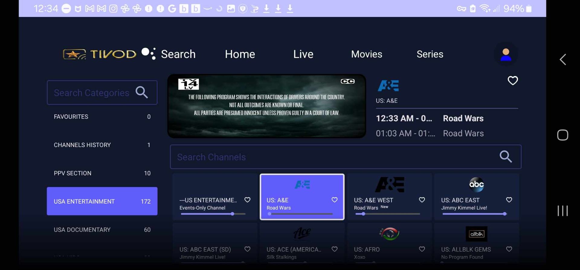 The latest update for the TiVOD smarters app